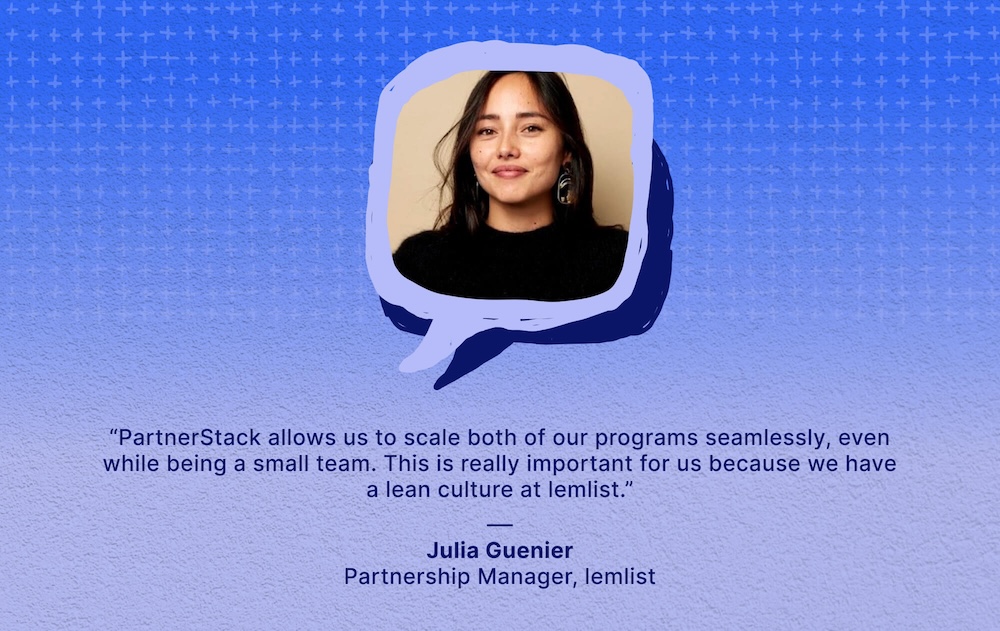 “PartnerStack allows us to scale both of our programs seamlessly, even while being a small team. This is really important for us because we have a lean culture at lemlist.”